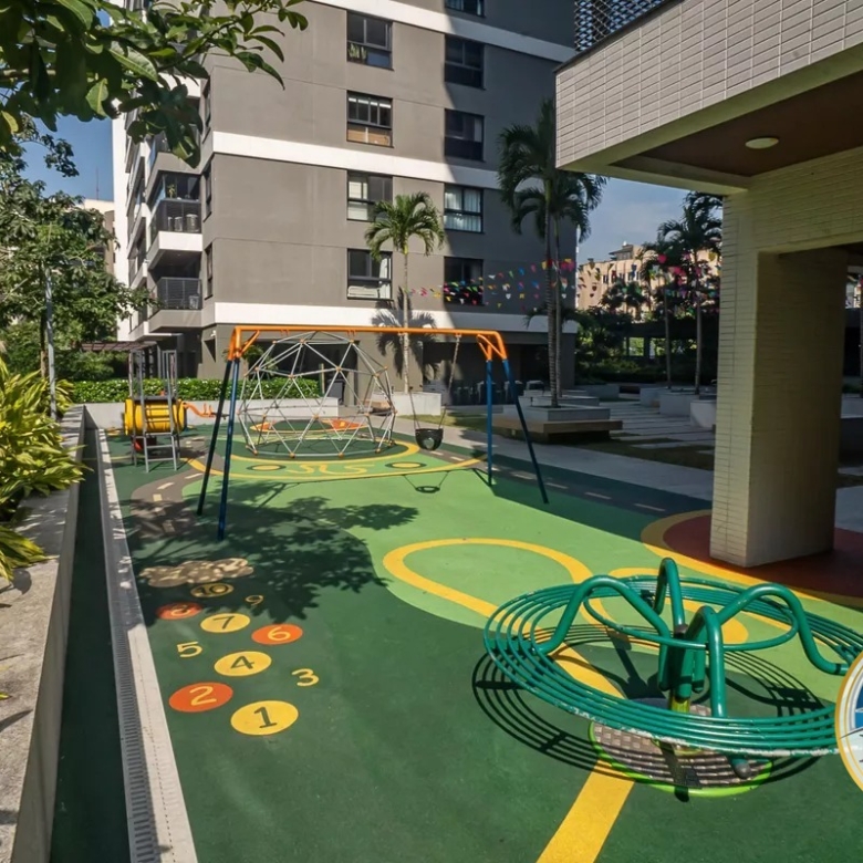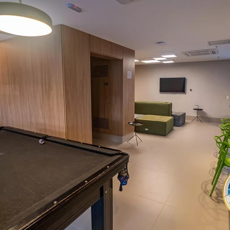 Playground, Piscina, Churrasqueira, Quadra esportiva, Academia, Salão de festas, Sauna, Brinquedoteca, Corrimão, Piso tátil, Rampas de acesso, Salão de jogos, Vaga de garagem acessível, Área verde, Elevador, Portaria 24h